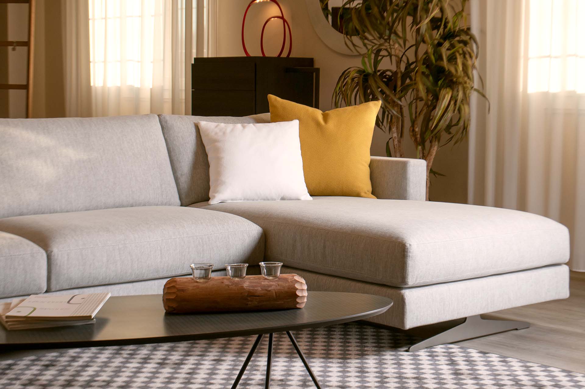 Questo divano lineare o angolare con chaise longue incarna il perfetto equilibrio tra estetica e comfort. Le sue linee pulite e geometriche, caratterizzate da braccioli squadrati e una struttura solida ma visivamente leggera, lo rendono un pezzo d’arredo raffinato e senza tempo.I piedini in metallo, sottili ma resistenti, conferiscono un tocco contemporaneo e mantengono il divano sollevato da terra, donando una sensazione di leggerezza. Perfetto per chi cerca un elemento elegante ma funzionale, ideale per arricchire un soggiorno moderno con un tocco di accogliente sofisticatezza.